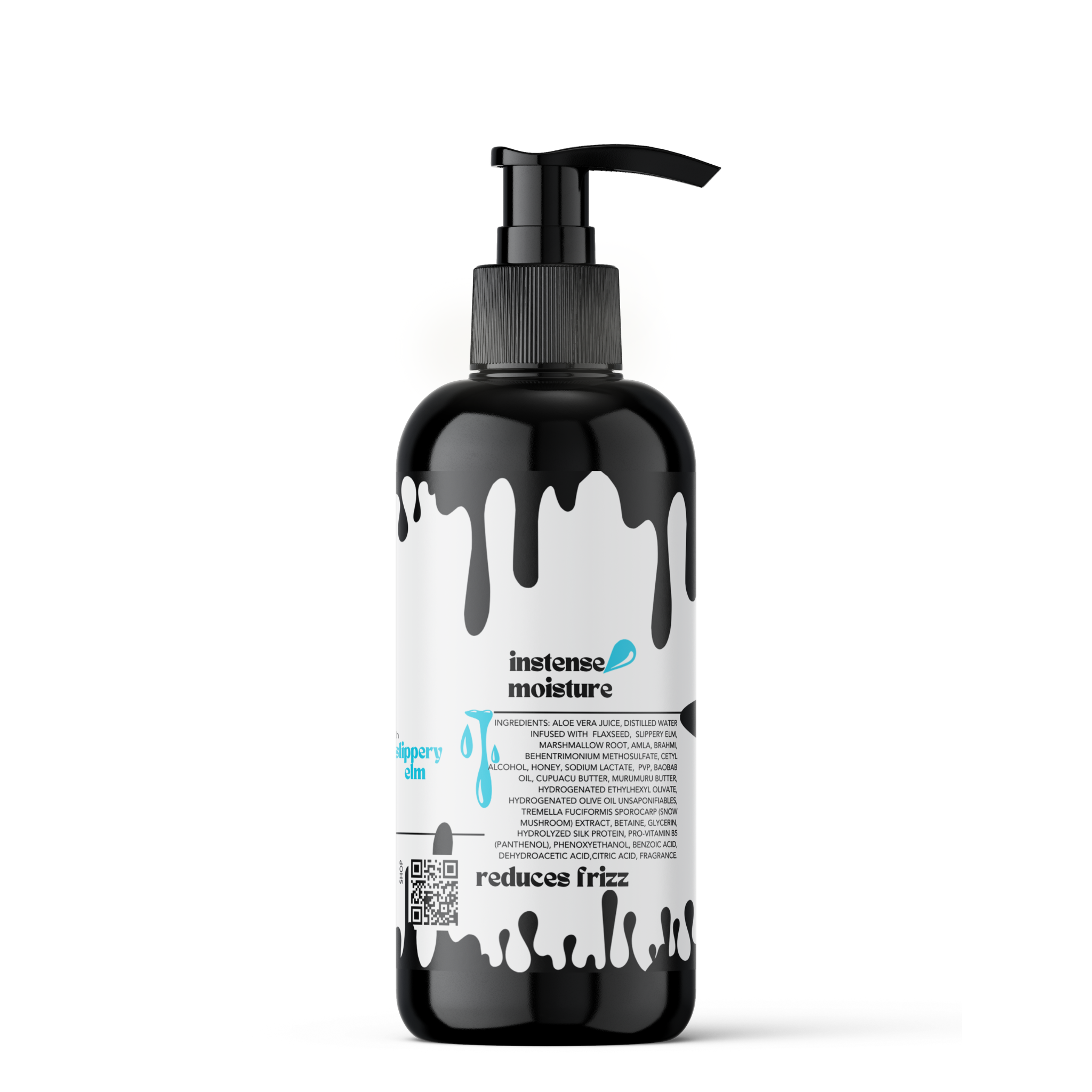 INGREDIENTS: Aloe Vera Juice, Distilled Water infused with Flaxseed, SLIPPERY ELM, Marshmallow Root, Amla, Brahmi, Behentrimonium Methosulfate, Cetyl Alcohol, Honey, Sodium Lactate, PVP, baobab oil, Cupuacu Butter, Murumuru Butter, Hydrogenated Ethylhexyl Olivate, Hydrogenated Olive Oil Unsaponifiables, Tremella Fuciformis Sporocarp (Snow Mushroom) Extract, Betaine, Glycerin, Hydrolyzed Silk Protein, Pro-Vitamin B5 (Panthenol), Phenoxyethanol, Benzoic Acid, Dehydroacetic Acid,Citric Acid, FRAGRANCE.